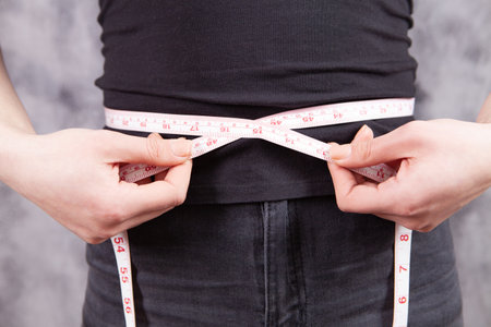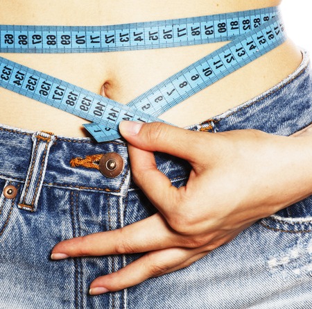 girls stomach measuring with tape twice isolated close up