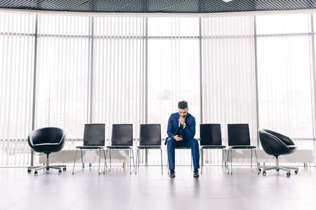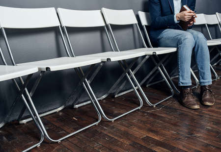 Man sitting on a chair one waiting job interview job