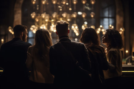 Friends out for alcohol drink, back view. bar interior at night. Generative AI