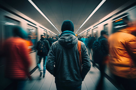 Modern commuters in a bustling subway station