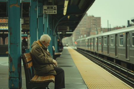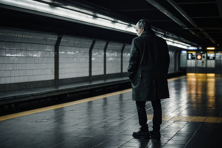 Mature man waiting for the train on the platform of the subway station