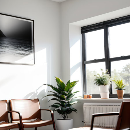 A bright waiting area featuring comfortable seating and vibrant plants, creating a welcoming atmosphere
