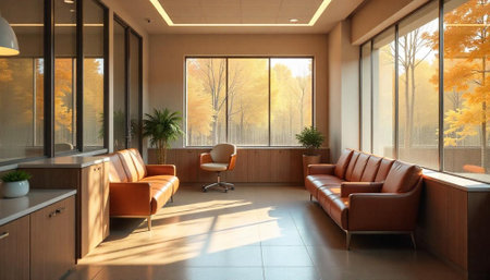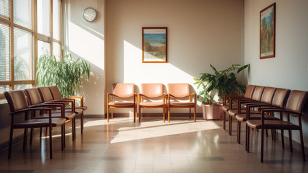 Empty Chairs in a Doctors Office Waiting Area Healthcare Access and Patient Care Concept.