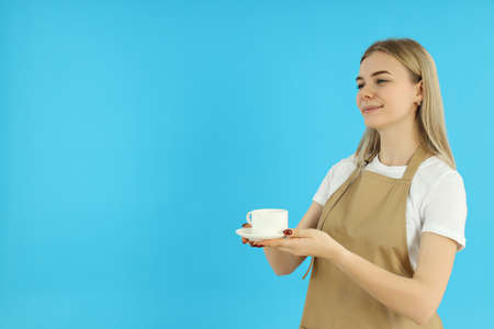 Concept of profession with young waitress, space for text