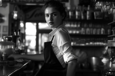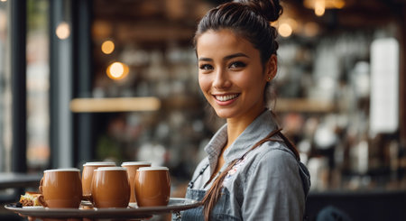 Coffee Culture: a Captivating Portrait of a Barista Woman in a Cozy Cafe