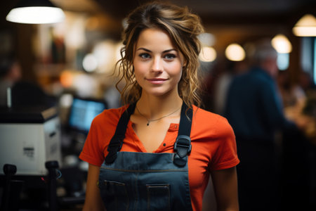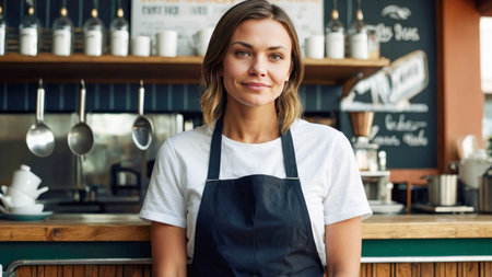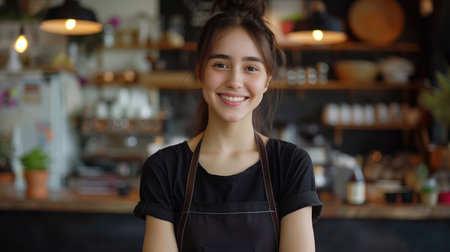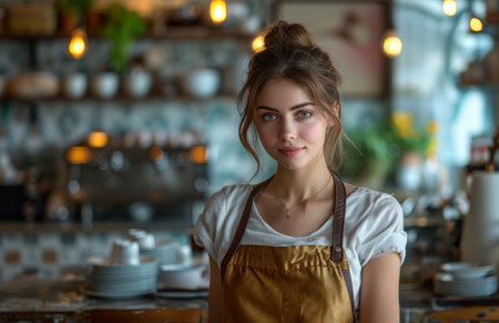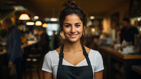 Coffee Culture: a Captivating Portrait of a Barista Woman in a Cozy Cafe