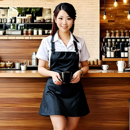 portrait beautiful asian woman barista at the cafe, generative art by A.I.