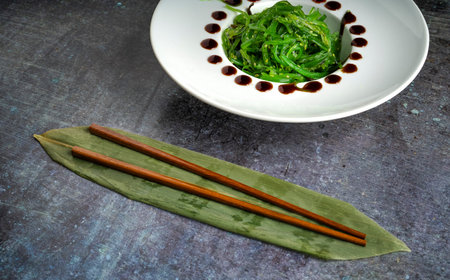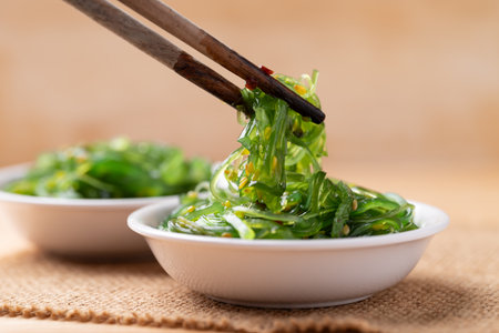 Hiyashi Wakame Chuka or seaweed salad on table, Japanese food