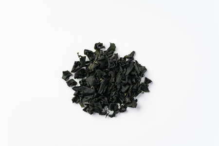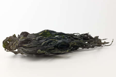 Close up Japanese Wakame seaweeds, isolated Wakame seaweeds on white background, clipping path around wakame seaweed is in file.