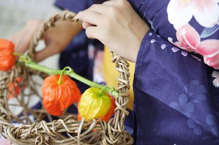 Beautiful traditional Japanese hat in Jidai matsuru festival in Kyoto Japan