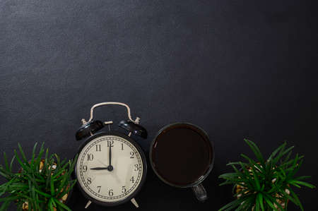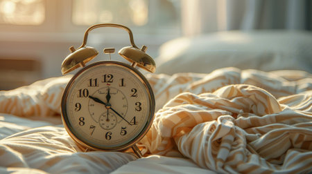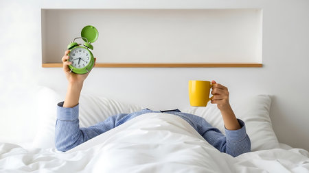 Morning Routine With Strong Coffee and Alarm Clock in Bed