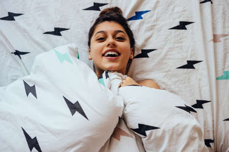 Self-isolation, good morning, laziness and wake up in morning at weekend