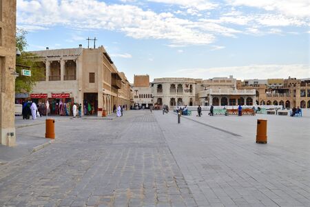 Doha, Qatar - December 20, 2018: city street, traditional architecture