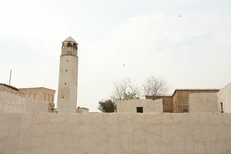 Empty buildings and Mosque in the desert town of Al Wakrah (Al Wakra), Qatar, in the Middle East