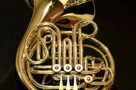 Detail of French horn on a golden background