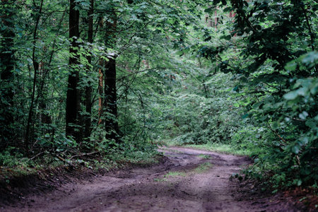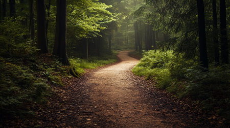 Lonely footpath in misty forest symbolizing quiet absence of human presence