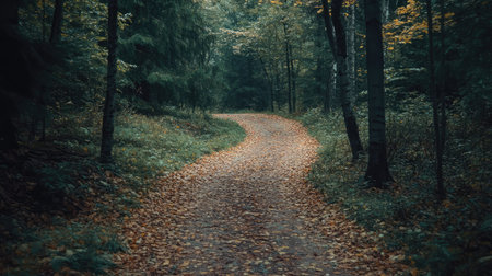 a pathway in an unexplored forest, with a misty atmosphere, showcases the essence of nature in this 8k resolution photograph. the dark green and dark emerald tones, reminiscent of german romanticism, create a captivating and mysterious ambiance. this image, captured by eve ventrue, exudes a whistlerian aesthetic. ai generated