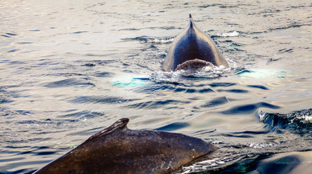 Great whale emerging from the deep sea of the Gulf of California where the Cortez Sea meets the Pacific Ocean, in the state of Baja California Sur, Mexico. Whale concept.