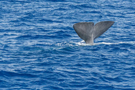 Tail fin of a sperm whale on a whale watching boat tour in the arctic atlantic ocean off the coast of Vesteralen islands north of Lofoten in Norway