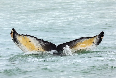 Tail fin of a surfacing whale, in Walvis Bay, Namibia.