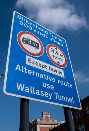 sign near entrance fo Mersey tunnel between Birkenhead and Liverpool in March 2020