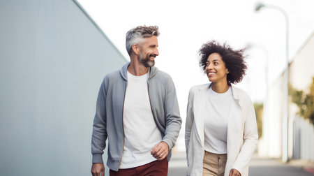 Portrait of a happy mature couple walking on the street and smiling