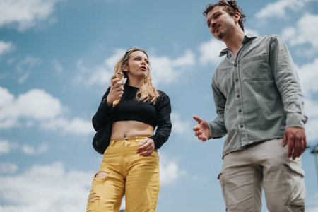 Young friends enjoying a sunny day outdoors in casual clothing and relaxed style