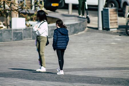Tel Aviv Israel February 20, 2020 View of unidentified people walking in the streets of Tel Aviv during a sunny day in winter