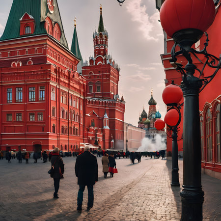 Moscow, Russia - May 27, 2021: View of the Red Square and the Kremlin on a cloudy spring day.