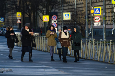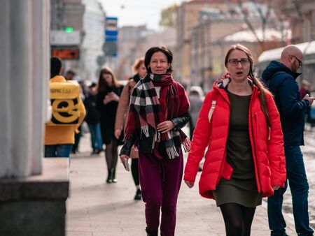 Saint Petersburg, RUSSIA - March 25, 2020: people on the streets of the city.