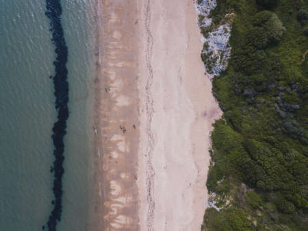 An aerial shot of the area of the Sandsfoot Beach, Weymouth, Dorset taken with a drone