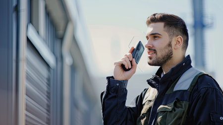 Communication in the Workplace. Engaged professional using a walkie-talkie.