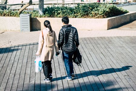 Tel Aviv Israel December 22, 2019 View of unidentified people walking on Herbert Samuel Promenade in Tel Aviv in the afternoon