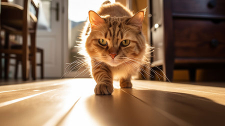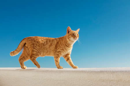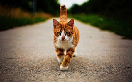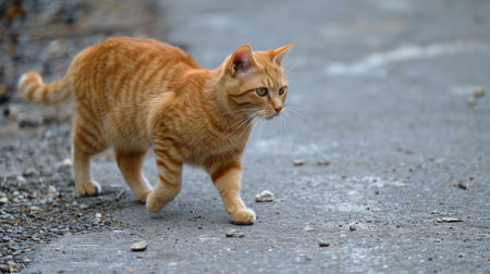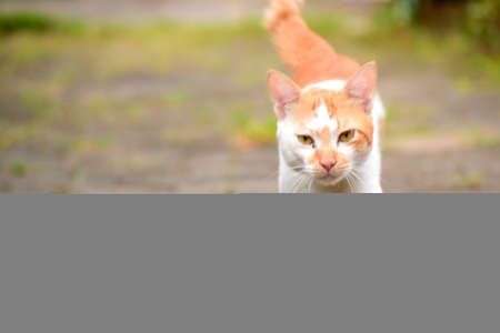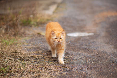 Ginger cat Close up view of lovely Ginger cat kitten walks on the ground