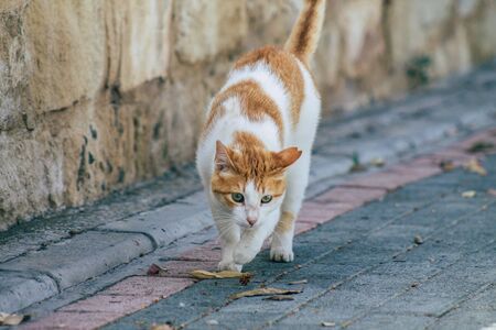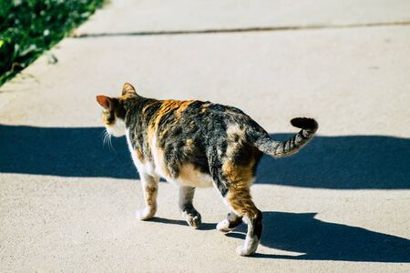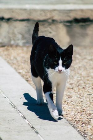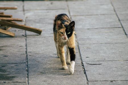 Limassol Cyprus April 01, 2020 View of domestic cat living in the streets of Limassol in Cyprus island