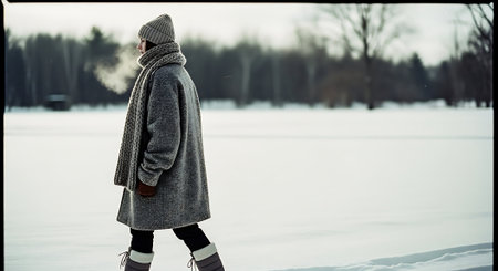 Mysterious Figure Embracing the Winter Wonderland: A Black Hoodie Wanderer on Enchanting Snowy Pathw