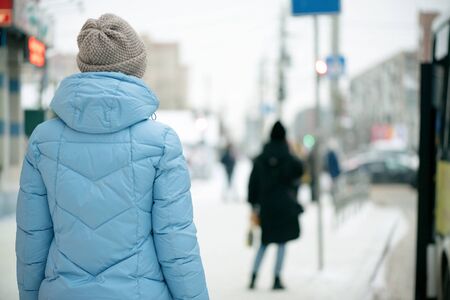 People walking in the snow Winter season, chilly, cold frost, morning freshness, December, winnye everyday life, winter season, snowflakes snowfall. Cold air temperature