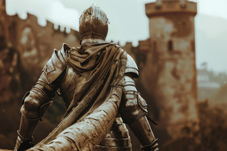 Medieval knight armor and castle in the background