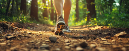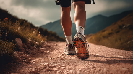 Runners Legs on Forest Trail. Fitness and Vitality Concept. Ai generated