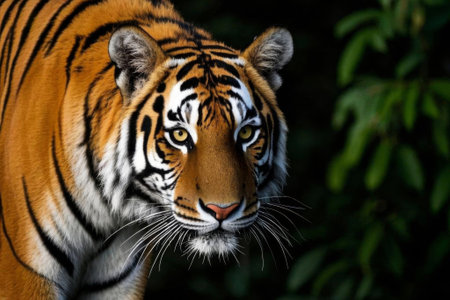 Close-up of a tiger in a jungle, wild dangerous animal.