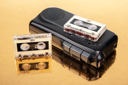The vintage audio cassette tape, analog magnetic tape format for audio recording and playback.