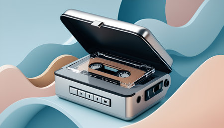 A nostalgic scene featuring vintage audio equipment, including cassette players, cassette tapes, and retro headphones. Capturing the charm of analog sound and the history of music technology, perfect for themes of nostalgia and vintage tech.