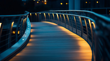 Vanishing point leads to modern steel bridge generated by artificial intelligence