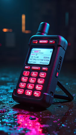 A communication device featuring an antenna and adjustable knobs rests against a plain background. This device is essential for maintaining clear communication in various settings.