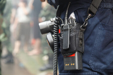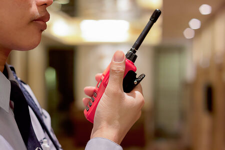 Red radio communication with security guard