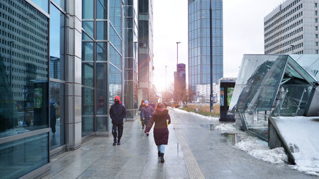Warsaw, Poland. 12 January 2025. People on the street. People of different ages and nationalities walk across in the city center, winter time.