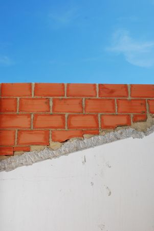 photo of a wall under construction (blue sky background)