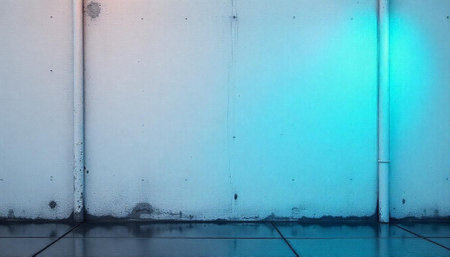 Urban Concrete Wall Background with Neon Lighting and Reflections