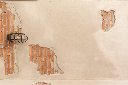 Old brick wall of an abandoned house background texture with free blank copy space for text.