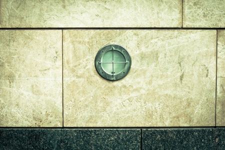 Vintage wall lamp on dark blue wall background with copy space for text or desig